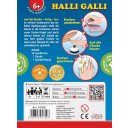 Un timbre en mitad de la mesa, un montón de cartas para cada jugador y en cuanto salgan exactamente cinco frutas del mismo tipo,¡cuidado! ¡es hora de ir a por el timbre! ¡y el más rápido será el vencedor de Halli Galli!